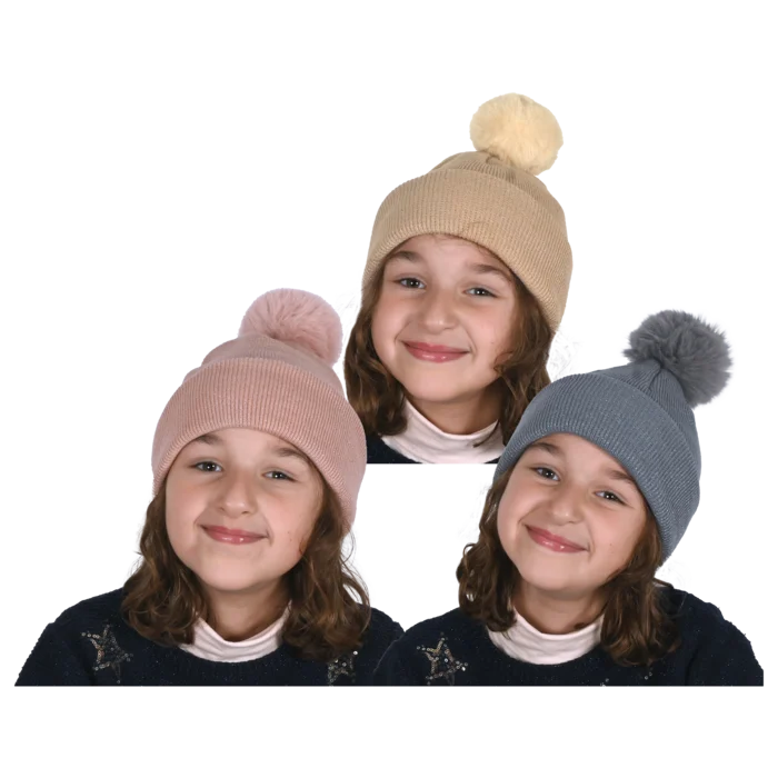 BONNET AVEC POMPON 3ASS ENFANT (scol 12)