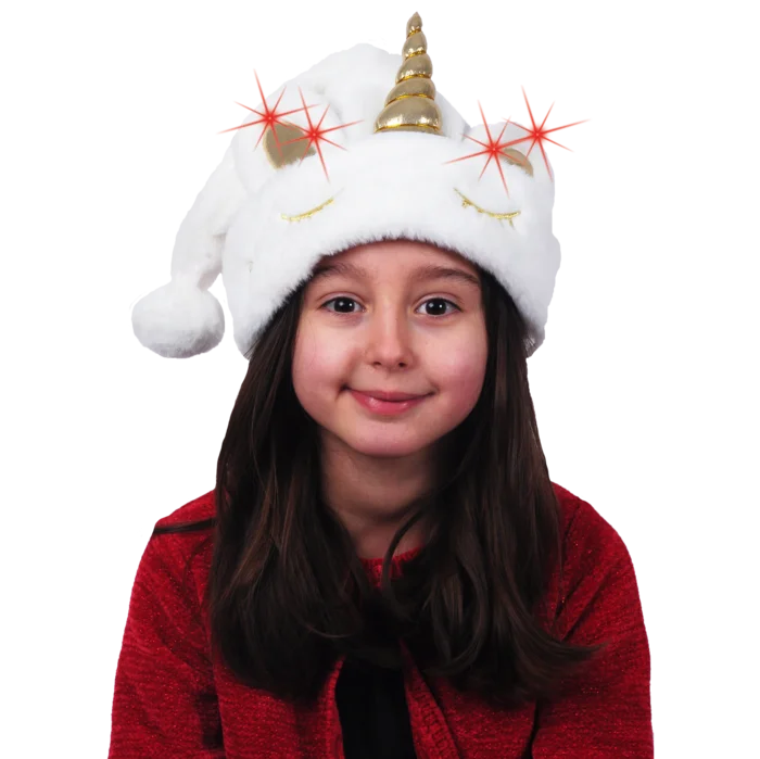 BONNET BLANC LICORNE LUMINEUX