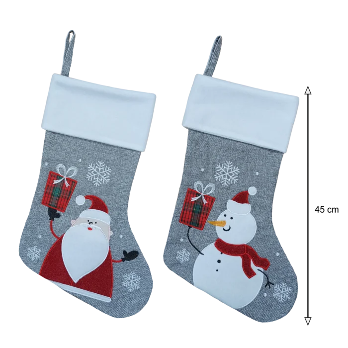 Cette botte de Noël en style lin gris est l’article à disposer impérativement chez tous les grossistes en décoration de Noël. Ces décors brodés rappelant les symboles emblématiques de Noël sont si magnifiques que vos clients sont séduits, vos ventes sont garanties !