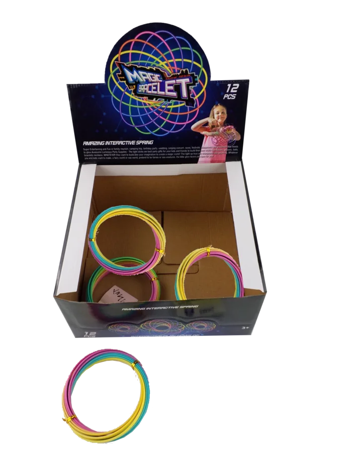 En boutiques de parcs d’attractions ou sur les stands de pêches aux canards : Mettez en plein les yeux aux petites demoiselles avec ce bracelet aux couleurs de l’arc en ciel. Présenté dans sa jolie boîte décorée, l’achat d’impulsion est assuré !