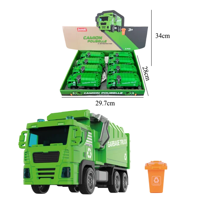 Ce camion poubelle à retrofriction suscite toujours autant d’admiration ! Tous les détails ont été pensés, jusqu’à l’accessoire essentiel : la poubelle ! Ce véhicule de coloris vert, regroupé dans une boîte de présentation en carton pour limiter les déchets, il fallait la trouver cette idée écologique ! Optez vite pour ce camion emblématique et ludique à prix économique…