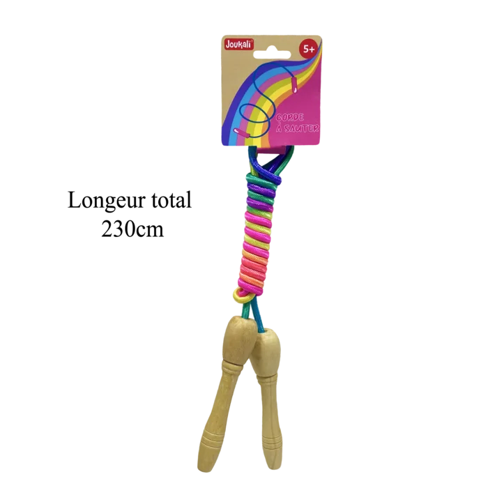Mettez de la couleur dans les yeux de vos petits acheteurs avec cette corde à sauter de qualité ! Les poignées ergonomiques en bois se dévissent pour adapter la taille de la corde à la croissance de l’enfant et faire de cet article, un loisir à l’infini ! Son coloris arc-en-ciel capte l’attention pour de beaux achats d’impulsion. A commander sans modération !