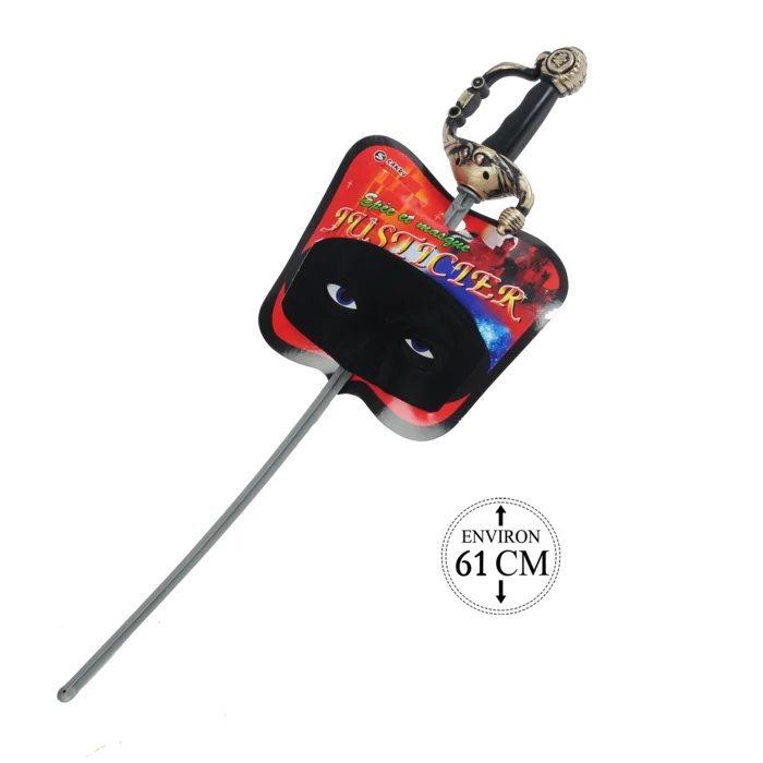 Ce set composé d’une épée et d’un masque noir est la finition parfaite d’un costume lors de fêtes d’écoles mais également dédié à tous les fournisseurs de déguisements. Le chevalier masqué entre en scène, le succès est assuré.