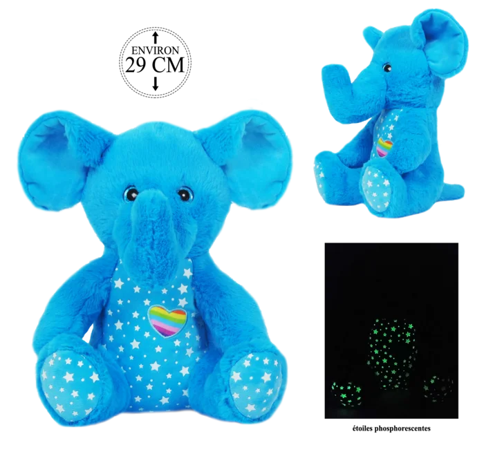PELUCHE ELEPHANT PHOSPHORESCENT 29CM