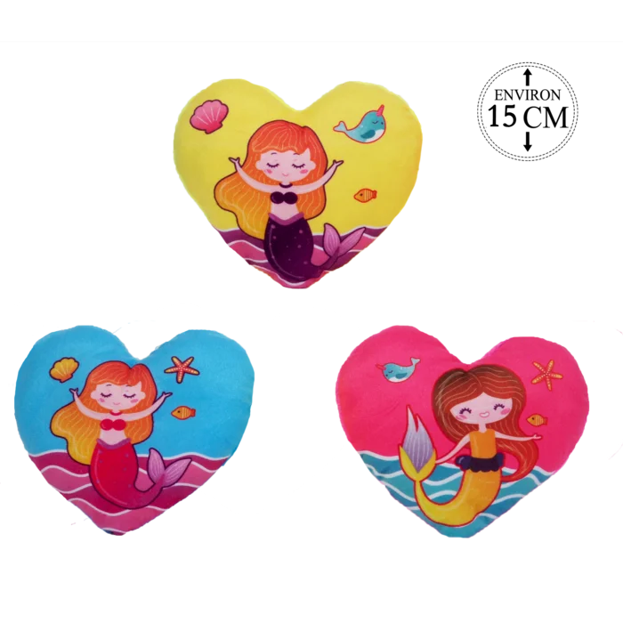PELUCHE FORME COEUR MOTIF SIRENES 15CM