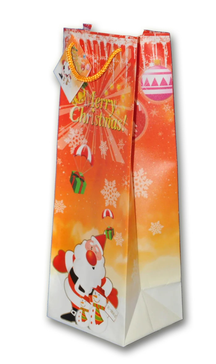 Spécifiquement dédié aux cavistes qui veulent mettre en valeur leurs belles bouteilles ! Vos clients sont enchantés d’offrir leur cadeau dans ce sac en PVC avec le décor du Père Noël sur fond orangé. Faîtes plaisir à coup sûr avec ce sac de la collection Sandy Noël.