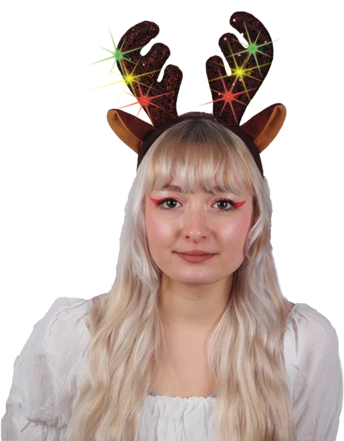 Ce serre-tête avec ses bois de renne lumineux est l’article de fête par excellence des restaurants et des discothéques. Vos clients remarquent instantanément ce joli diadéme, c’est votre touche festive, amusante et accueillante. Dépêchez vous, il n’y en aura pas pour tout le monde !