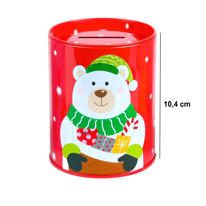 TIRELIRE RONDE OURS DE NOEL 8,5 x 10,4CM