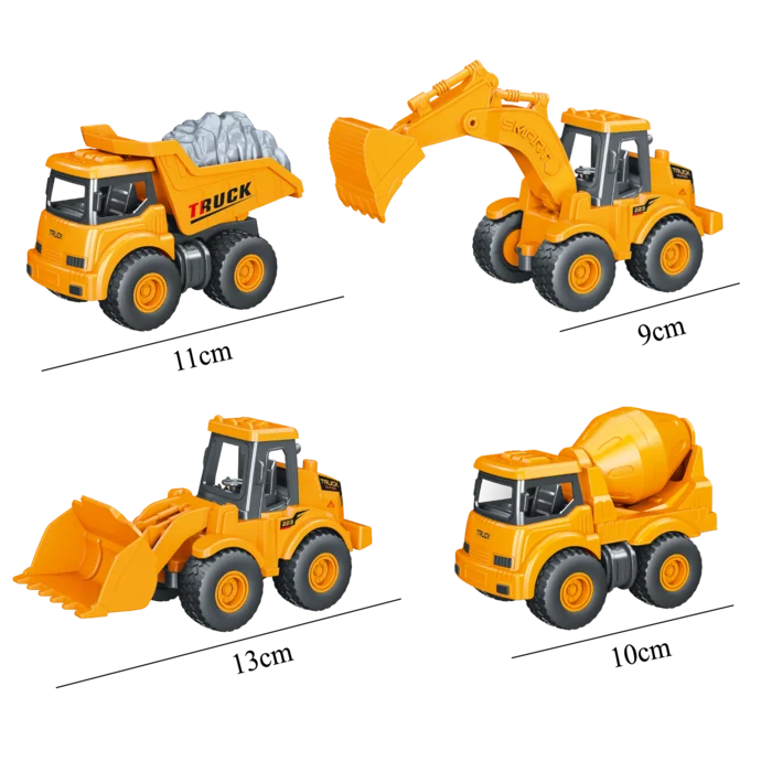 Voici les véhicules à rétrofriction à commander sans hésitation ! Disponibles en 4 modèles différents, ces engins à collectionner, se complètent ensemble pour finaliser les travaux de créativité ! Chaque engin a sa particularité, une bétonnière qui tourne, une pelle rotative, un tas de gravats amovibles par scratch, tout y est, pour le plus grand bonheur des petits constructeurs !